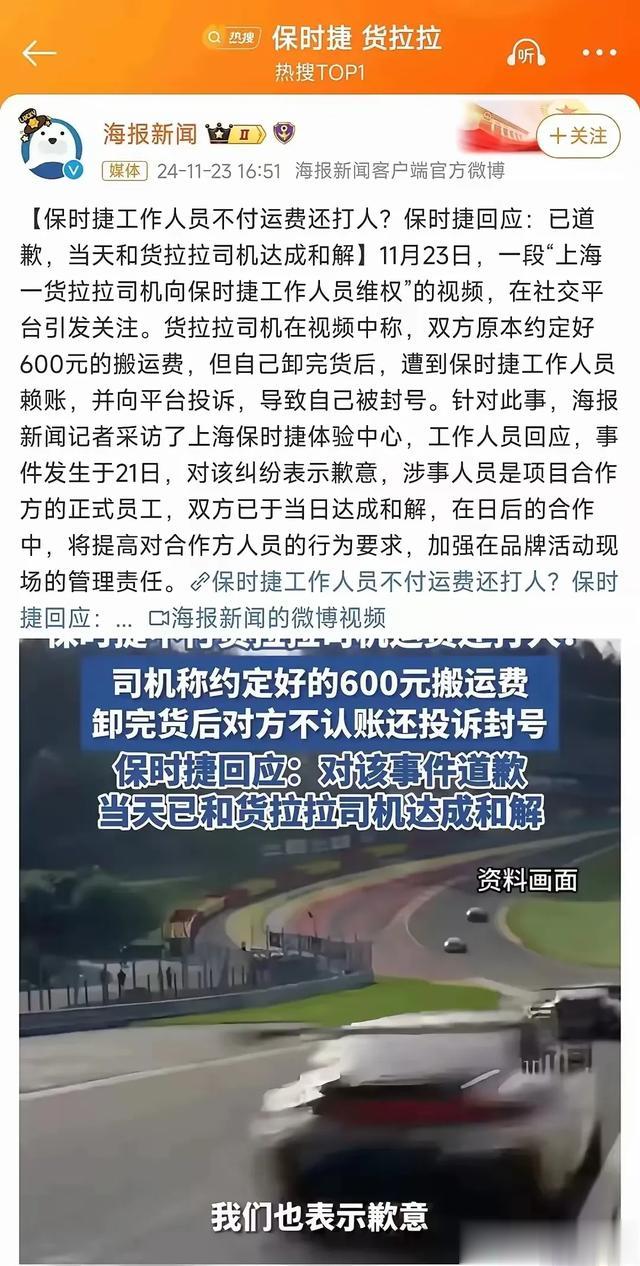 虽然经过保时捷公司出面回应解决,600块钱车费已经给了货拉拉司机,但是现在,保时捷公司也将当时的情况做了澄清!