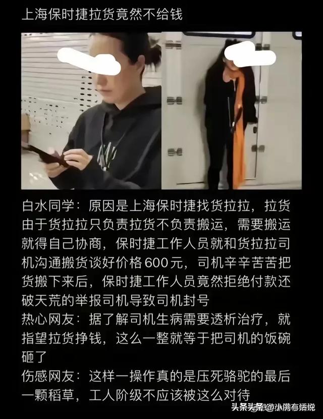 近日上海一保时捷公司,叫了一辆货拉拉,谈妥了600块钱车费,最后一分钱不付,后来居然还投诉货拉拉司机,导致其封号,其中原因是什么?我们不得知?但是视频传到网上,仍然引起了舆论的关注和广大网友的热议!