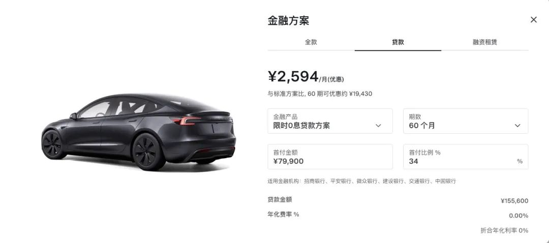 2024年,特斯拉率先推出Model Y五年0息政策。数据显示,其月销量增长了29.9%。今年4月,新款Model Y的政策是3年0息,Model 3则是5年0息。