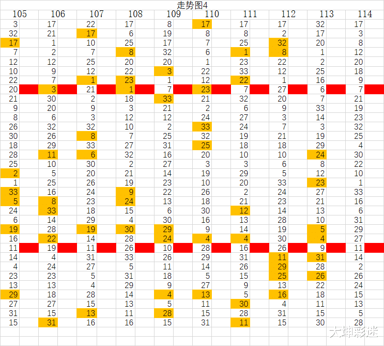 根据前面几期橘黄色开奖号相连行成的趋势进行判断, 3期以上基本可以判定为成熟趋势,可以多看几期,几条线就明白了。如果前面橘黄色开奖号码之间所间隔的格子为2格,那下期我们寻找号码的范围一般会从间隔格子1个空格,来挑选下期出号的号码。如果间隔的是3-4个格子,那么这期最好2个格子左右进行号码框选。