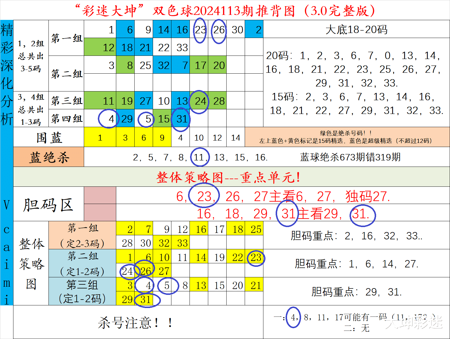 第二组:6,16,31,33出1-2码。