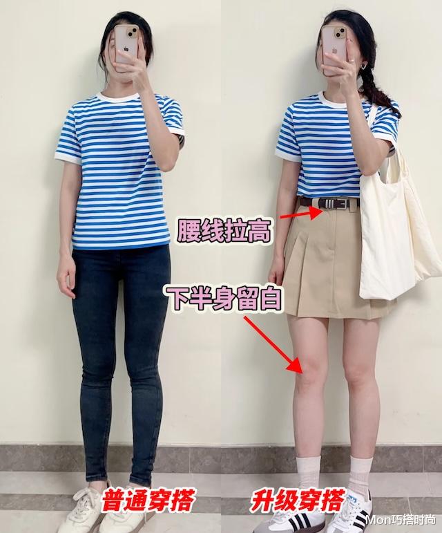 tips3:穿T恤时注意调整腰线,改善比例