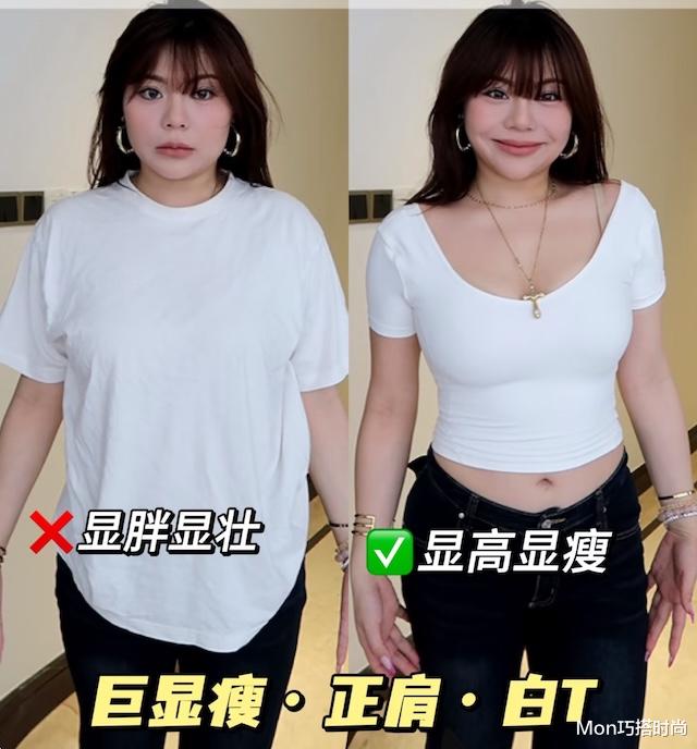对于微胖大骨架的姐妹来说,选对 T 恤款式简直就是 “显瘦神器”。大号 T 恤看似宽松舒适,实则是穿搭 “雷区”,这类 T 恤往往会让整个人看起来更加臃肿,把身材缺点暴露无遗。