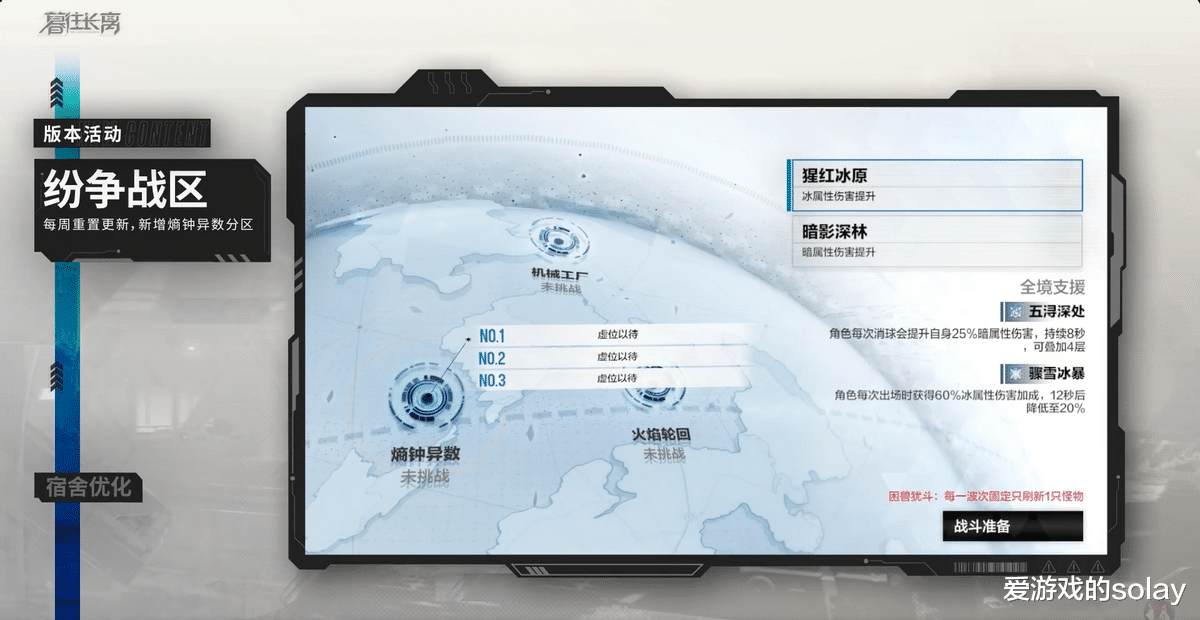 除了机体和涂装福利之外,对大家游戏体验影响最大的应该就是新版本优化内容了。战斗方面,纷争战区的关卡和周期结算都做了轻量化调整,关卡属性区域优化,每周只需挑战一次并且取消组队和排行榜,养老玩家再也不用担心要猛猛凹了;另外独域机体和泛用机体组队的【战术混乱】debuff也一并取消,简直是冷门厨力党福音啊。