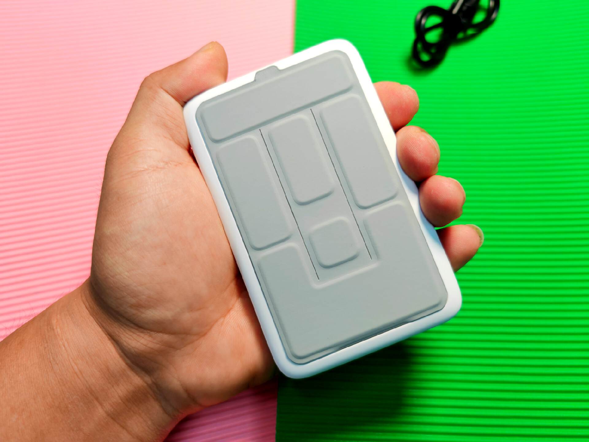 这个充电宝的一个特色就是背部设计了一个一体的磁吸支架,平时不用的时候根本就感受不到充电宝多出来些什么,反而会感觉到很有质感,但是在需要的时候,则是可以支起来,将充电宝当成一个支架用,并且支撑力还很强。