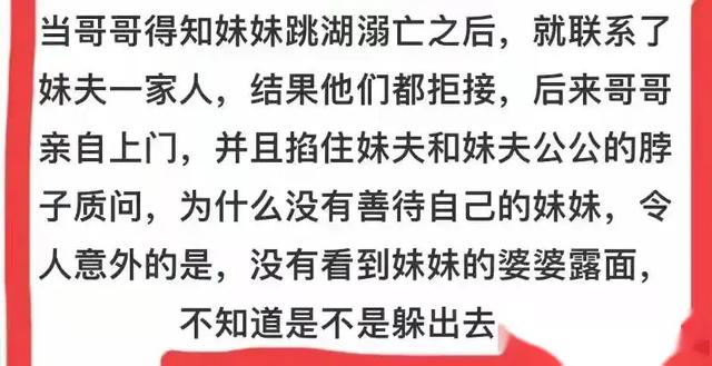 合肥一位年轻女教师,因家庭矛盾选择跳湖自尽,令人心痛!她出身农村,努力考上大学,并在合肥这座城市立足,但婚后生活却是一地鸡毛,婆婆强势,老公“妈宝”,凡事以母亲为先,从不顾及她这个做媳妇的。尤其在买房问题上,婆家根本不想在房产证上加她的名字,任由她以后的苦与累。她问哥哥怎么办,哥哥说:“既然结婚了,就一起努力还房贷嘛。”谁知,这就是一句轻描淡写的话,却让她感到无比绝望与失落。在找不到出路的情况下,选择了轻生。事后,哥哥和老公都很自责,如果当时多劝说几句,或者多陪伴关心几句,也许结果就会不一样。也希望大家以此为鉴,重视婚姻与家庭关系,多陪伴,多沟通,多关心!