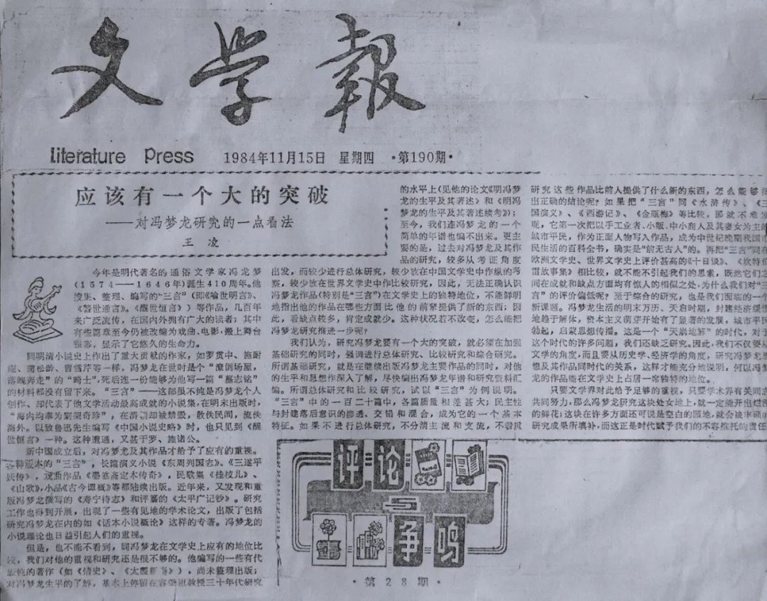 《文学报》1984年刊王凌文《应该有一个大的突破——对冯梦龙的一点看法》