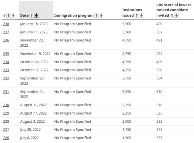 1月18日,加拿大联邦EE快速通道不区分抽选类别,向快速通道候选人发出了5500份邀请,抽选分490分。本轮是EE快速通道2023年第二轮抽选。快速通道邀请频率通常为每两周一次,继上轮1月11日邀请后,仅隔一周,快速通道再度发出邀请。