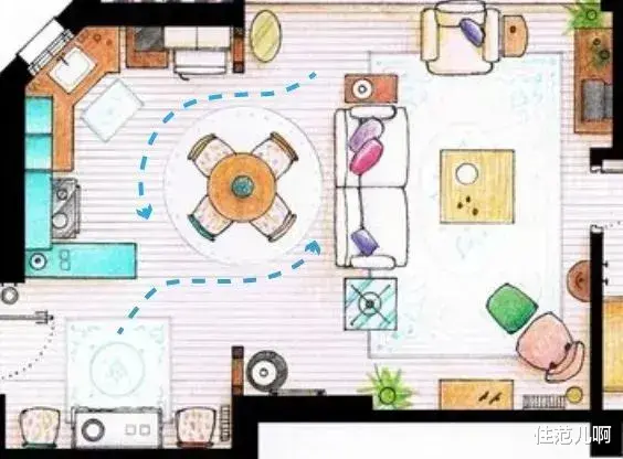 如果你家餐区是长方形,过道笔直,其他事不需要绕到餐区这里。