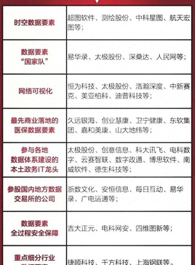 数据要素核心公司梳理:以下图表展示的股票不构成投资