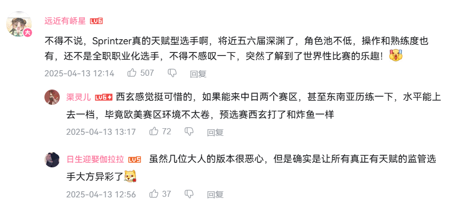 在这场比赛中,双方几名监管者的发挥都非常亮眼,不论是Gr_Jin还是RVL_Sprintzer都带给观众许多惊喜。Jin作为长期在游戏中霸榜的监管者选手进入职业战队后发挥一如既往的出色,甚至给观众带来一种“不是他只能抓四个,而是一局比赛只有四个求生者能抓的感觉”,而欧美赛区的选手Sprintzer在往届深渊赛场上也带给过大家许多精彩对局,因为他强大的个人实力,也被观众成为“西玄”,实力也不容小觑。