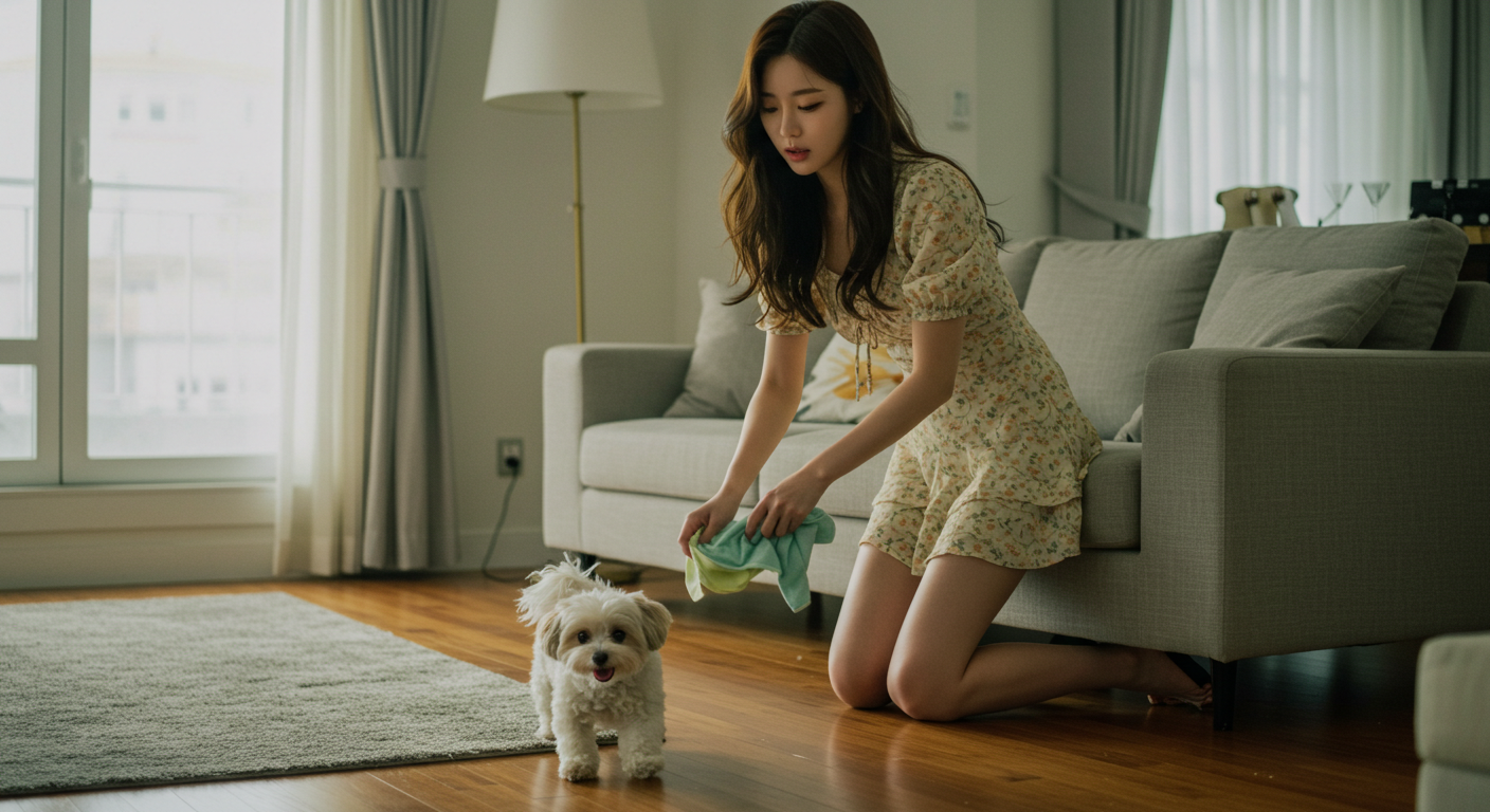 再用宠物安全地板清洁剂拖地,中和异味,无毒配方更安全。