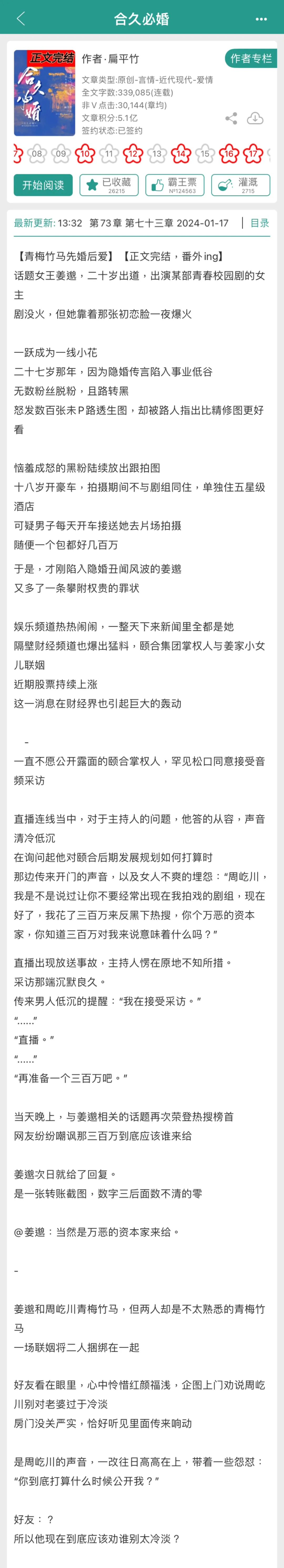 但是想要写出这样的情感,这样人设的男主,也真的太难了,真的非常非常容易写成没有魅力的舔/狗,所以这也是即使这本文纵有其它千般不好,但是也值得一看的原因