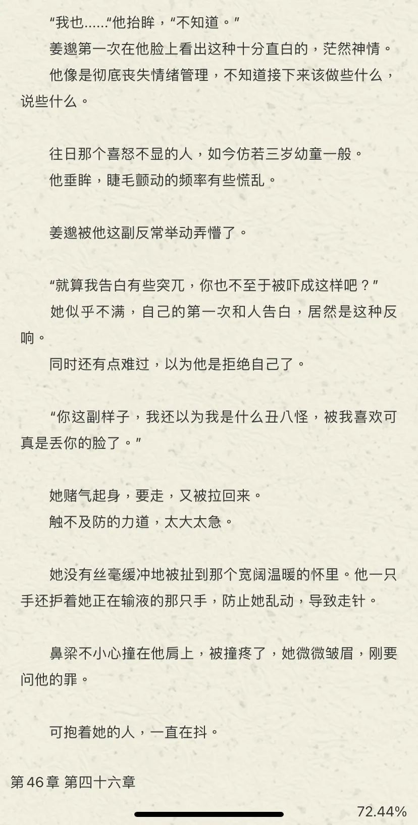 这段女主的告白,让男主手足无措的描写,和则慕《皇弟》里女主终于向男主展露情意时男主的无措,有异曲同工之妙