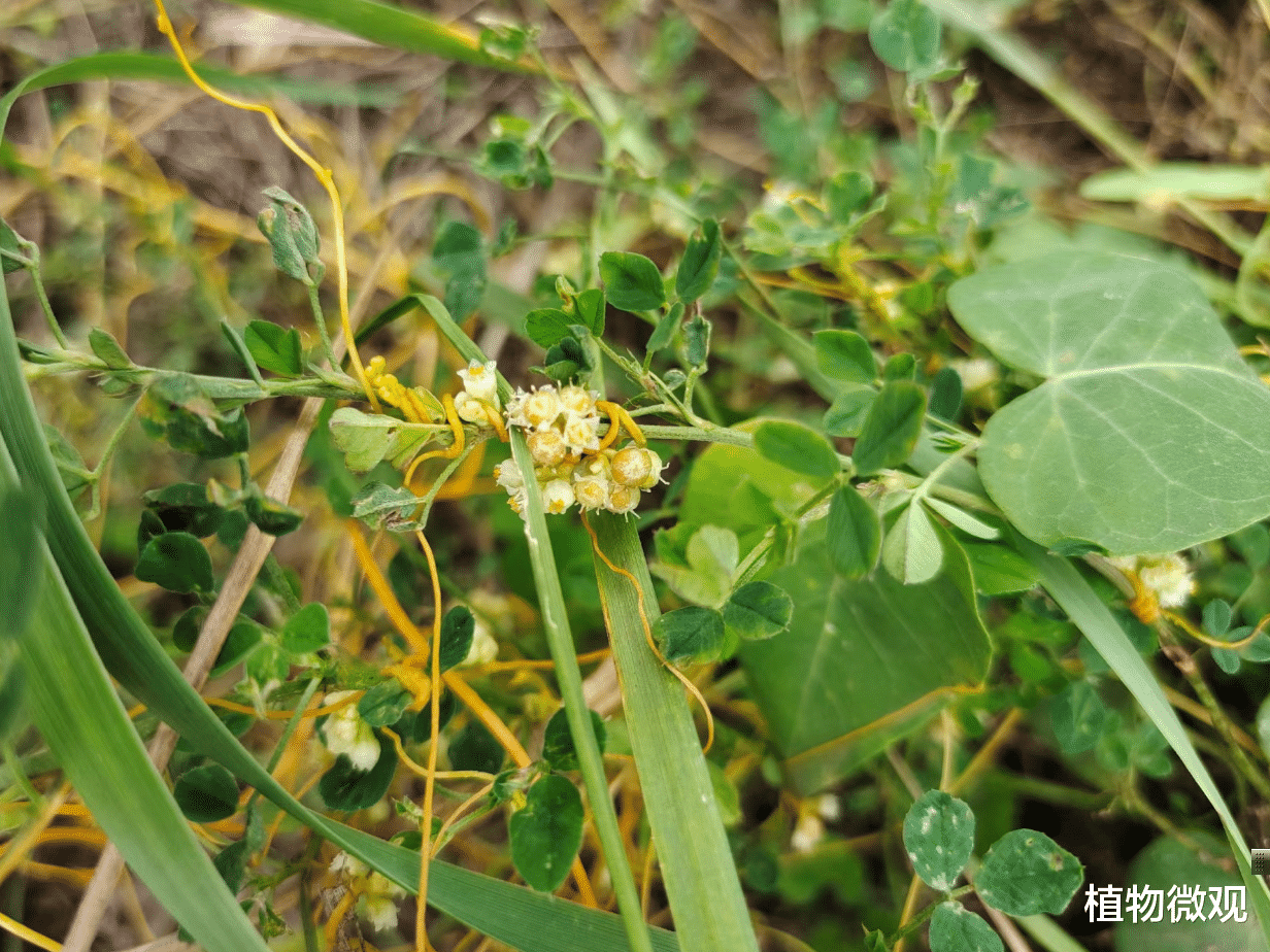 因为它是纯寄生植物,靠吸取寄主的营养物质生长。而笔者今天要给大家分享的这种植物,它同样不含叶绿体,也不进行光合作用,属于纯寄生植物,它就是菟丝子。菟丝子在农村其实很常见,很多农民朋友特别厌恶,甚至可以说人人喊打。因为它对农作物危害极大,特别是豆科植物。