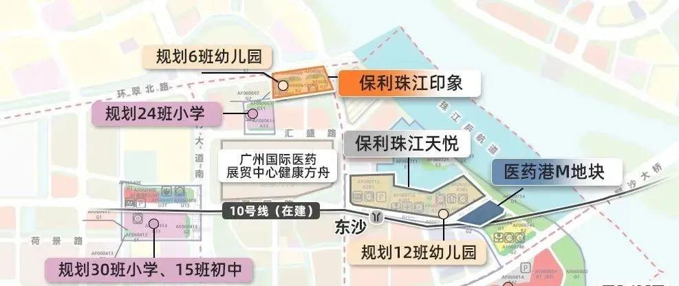 项目周边配套齐全,直线距离约700米左右,就是10号线东沙站,而且与江边绿道步行距离约200米,项目配建幼儿园,且与康有为纪念小学一路之隔。