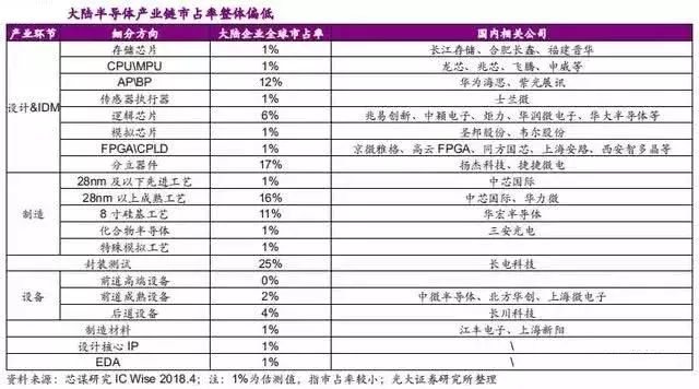 半导体是台湾少有的仍领先大陆的技术了,基于两岸实质上的分治状态,所以中国大陆和台湾暂且分开表述。