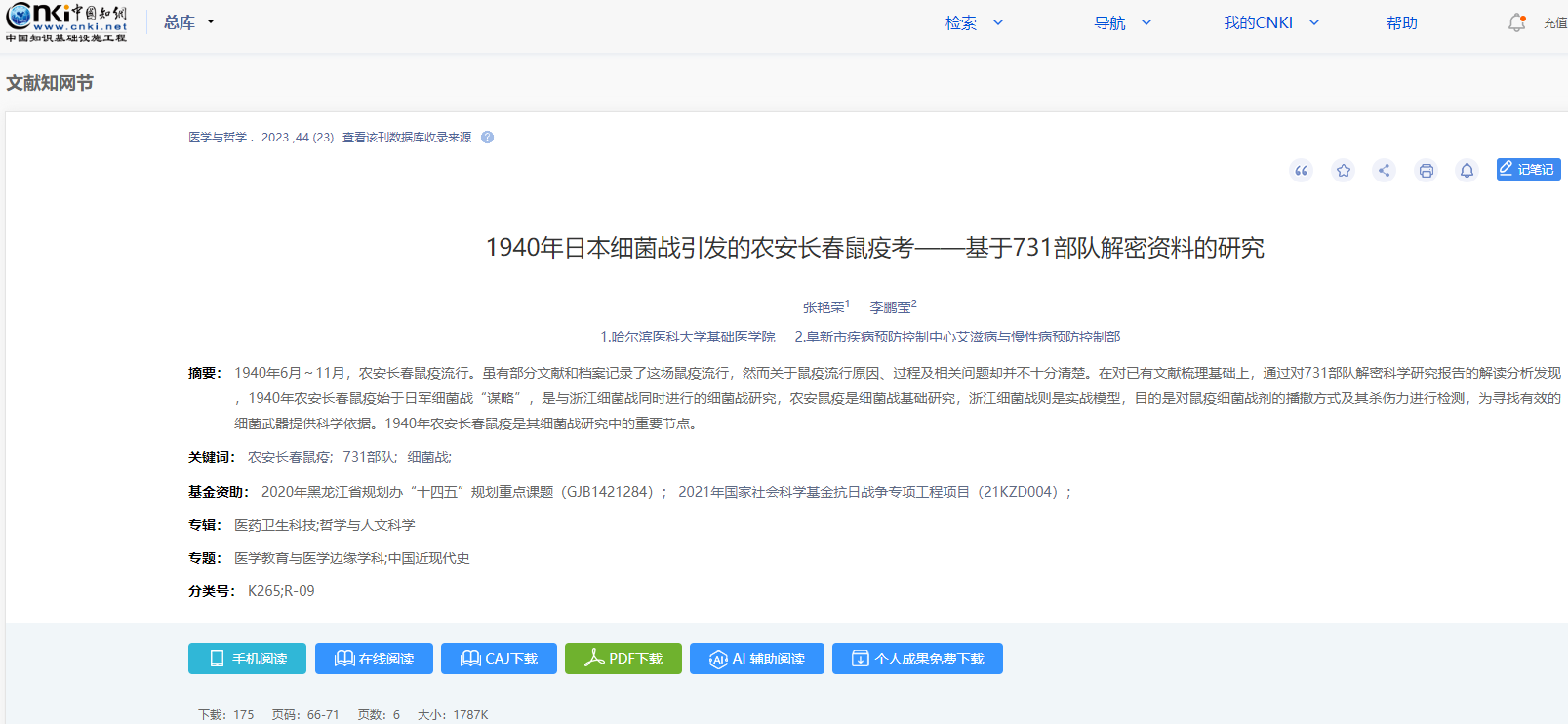 参考资料:中国知网:《1940年日本细菌战引发的农安长春鼠疫考——基于731部队解密资料的研究》
