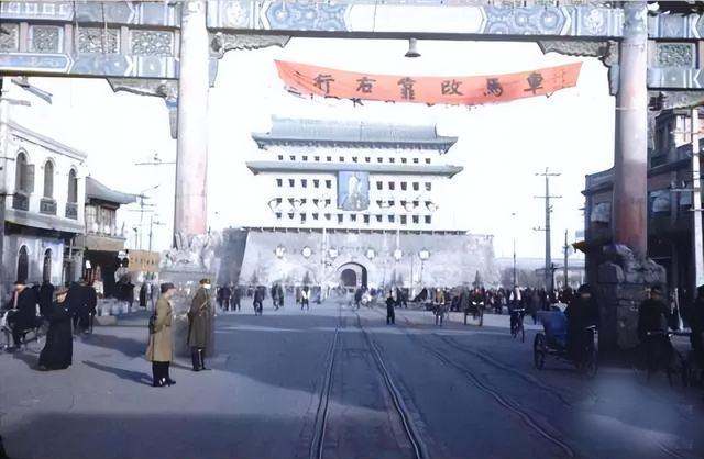 箭楼的顶上飘着条红布,上面写着:“车马得靠右边走”。那是在1934年,为了让路上的交通有个规矩,政府刚开始是让大家车马“靠左走”,谁要是不听话,就得交20块钱以下的罚款。