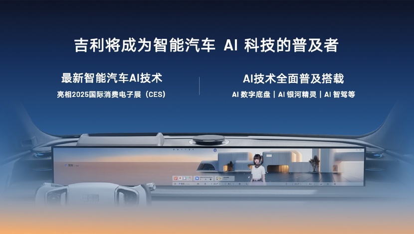 淦家阅透露,吉利将在1月7日的CES国际消费电子展上,向全球展示吉利AI科技在用户端、研发端以及生态端的全面布局与应用。在AI科技的赋能下,吉利的AI数字底盘、AI银河精灵、雷神EM-i超级电混、Flyme Auto智能座舱以及高价值智驾技术,将在最新产品上广泛搭载。吉利,将成为智能汽车AI科技的普及者。