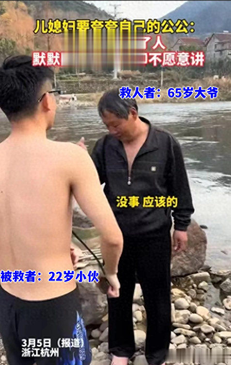 公公是个退伍老兵,虽然已经65岁但是身体素质不错,加上水性好,当时几乎是毫不犹豫的冲入水中救人!