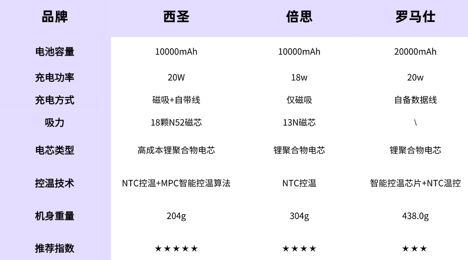 经过此番详尽且全面的评估,大家对西圣、倍思、罗马仕这三款充电宝的认知是不是更进一步了呢?其中西圣这款充电宝的话,在测评的三个维度中都稳居榜首,是目前百元价位中首选的一款。