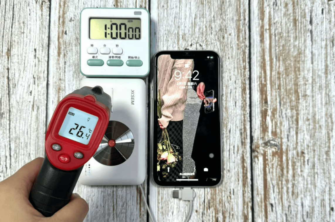 在持续 60 分钟的温度实测中,西圣充电宝的温度波动极小。在整个充电周期内,其温度始终稳定维持在 26.4℃,由此可见,该充电宝具备出色的散热性能。机身上搭载的NTC 温度监控系统与 MPC 智能温控算法,,能够对充电宝内部温度进行精确调控。此外,独特的 Air - DDVT 双层通风结构设计,进一步优化了散热机制,有效提升了散热效率。