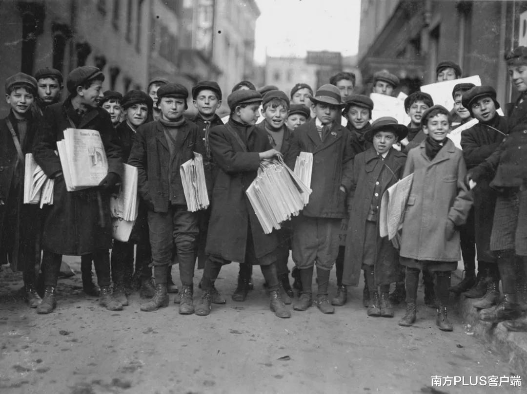 ▲1909年12月,新泽西州的一群小男孩报童