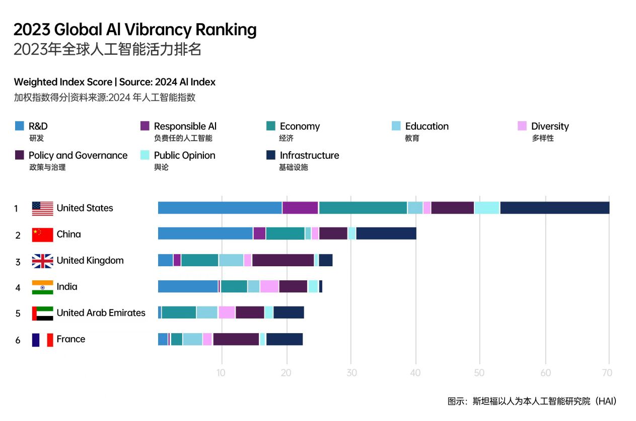 斯坦福人类中心人工智能研究所发布的“全球人工智能活力排名”
