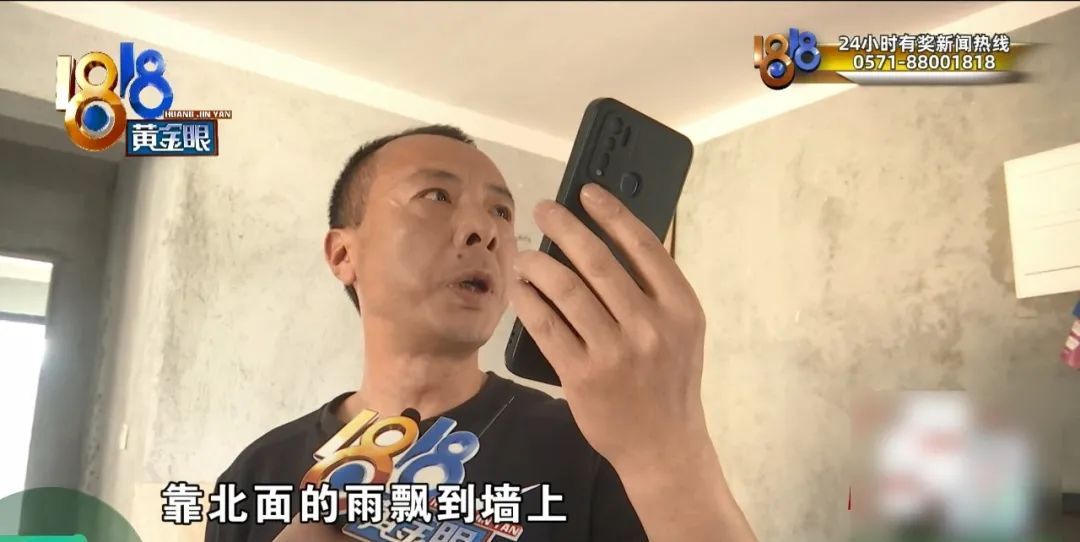 施工方 文工:开始我们也摸不着头脑,怎么会有呢?后来跟我们现场的工程部,还有一些补漏师他们的经验来判断,后来一说这情况分析完,房间那个应该不是漏点,因为是漏点的话,它就不是这种隐隐约约的,应该直接就是很阴湿状态。