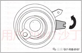 确认张紧器轮中心与螺栓中心的位置如图所示。