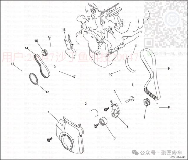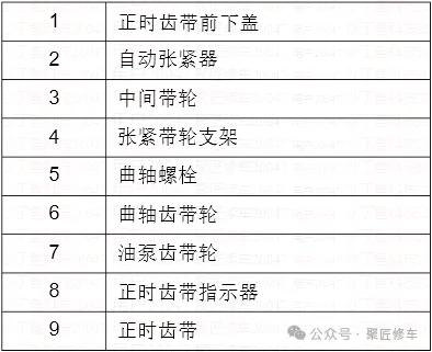 安装正时齿带,调节自动张紧器至规定位置,并拧紧自动张紧器固定螺栓。