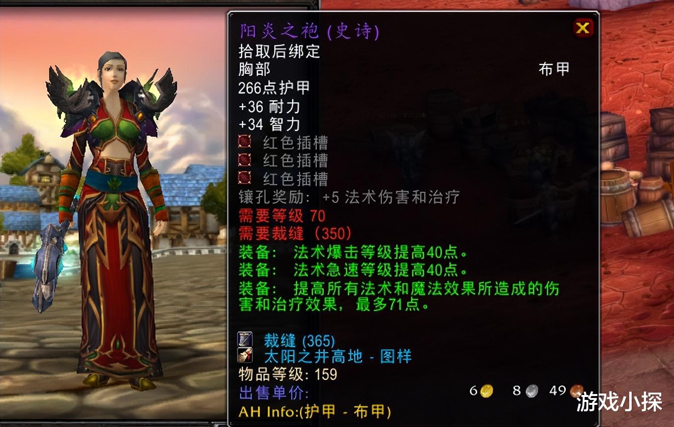 当然阳炎之袍成本较高(需要图纸、12个魔法布、12个暗影布和2个源生虚空),魔能征服者作为非BIS装备必然会非常便宜,玩家或许一两千金就能入手,适合玩家拿来吃排骨。