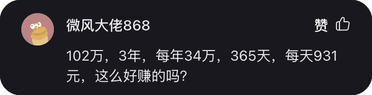 三年来总共挣了102万,