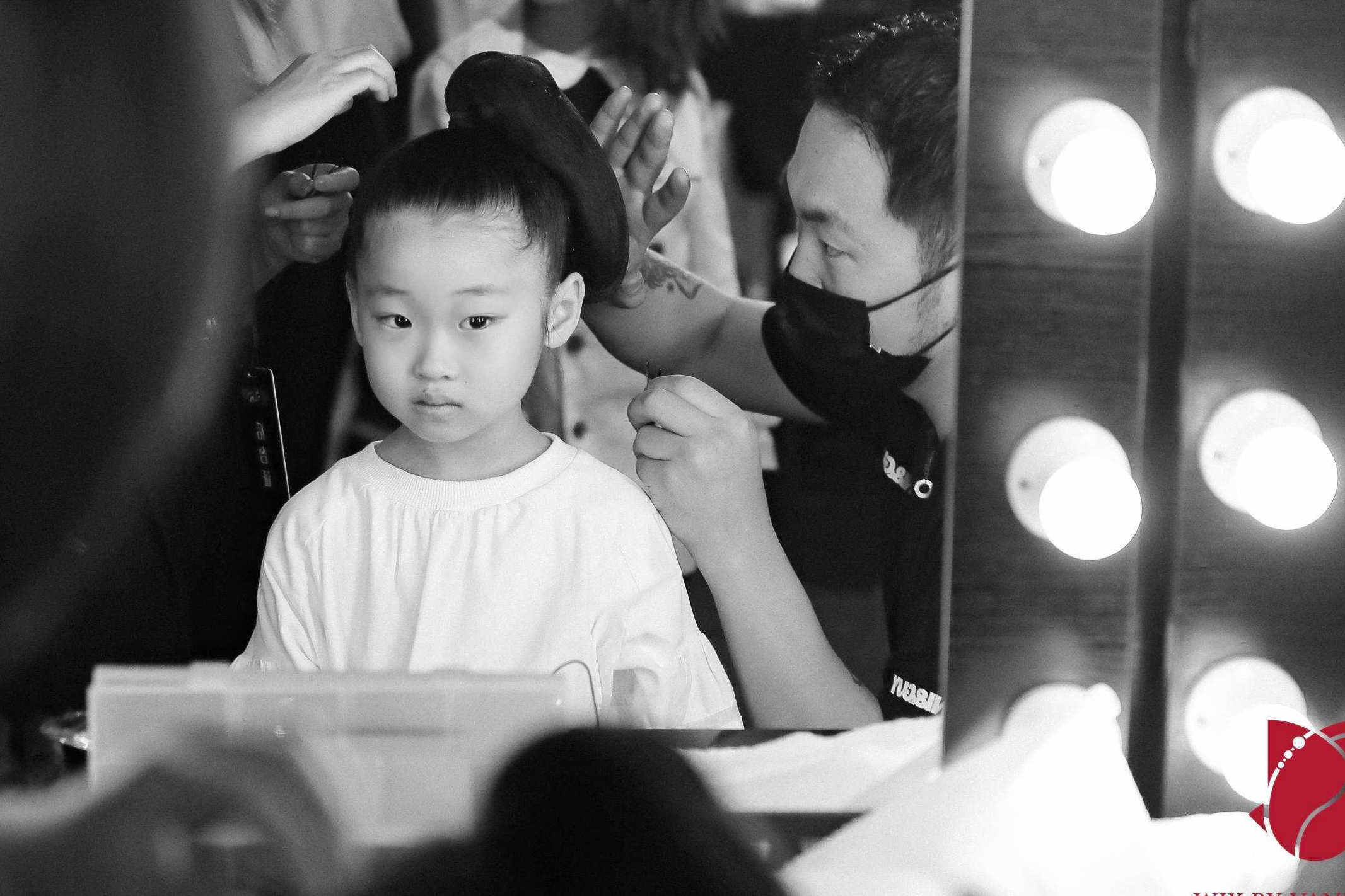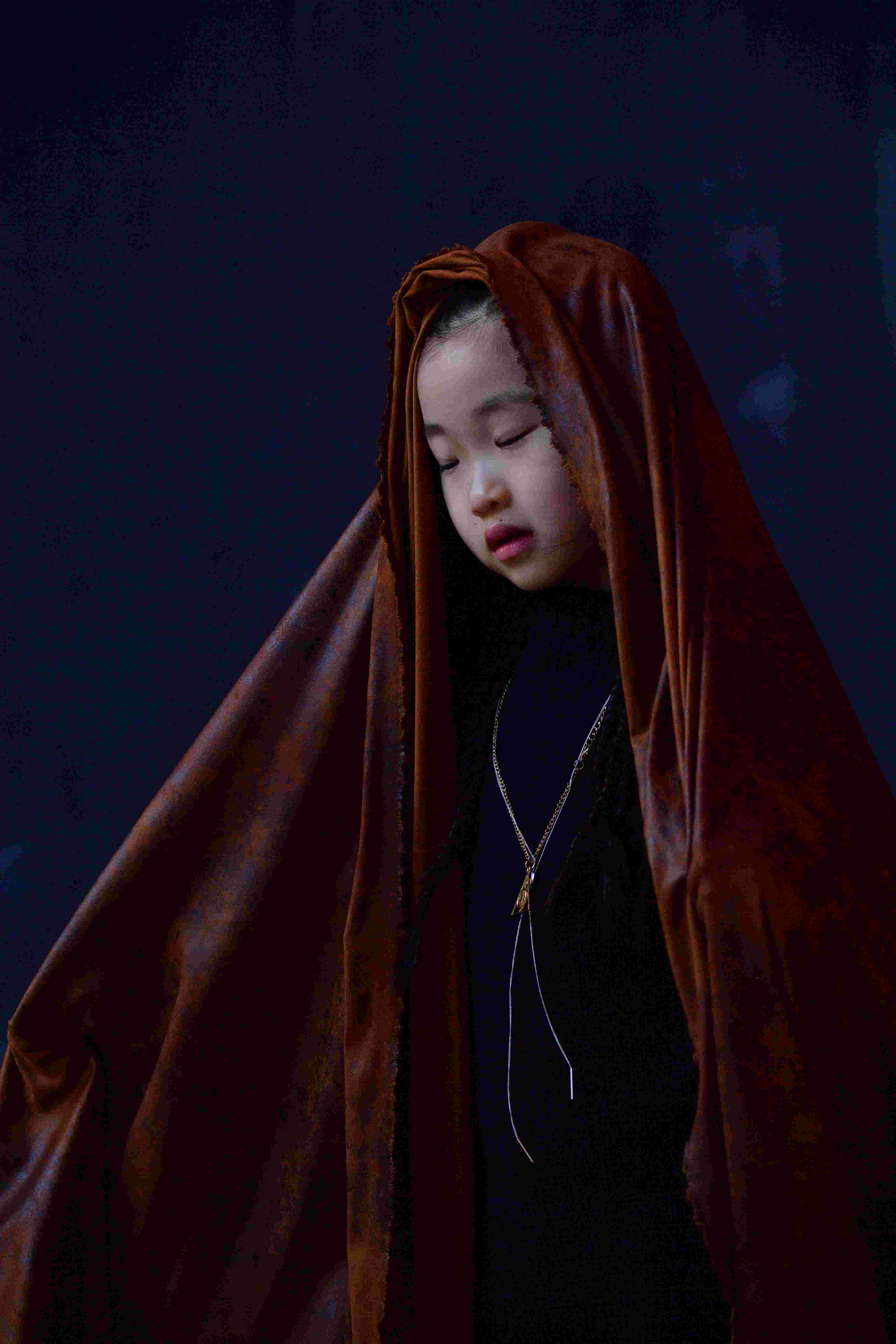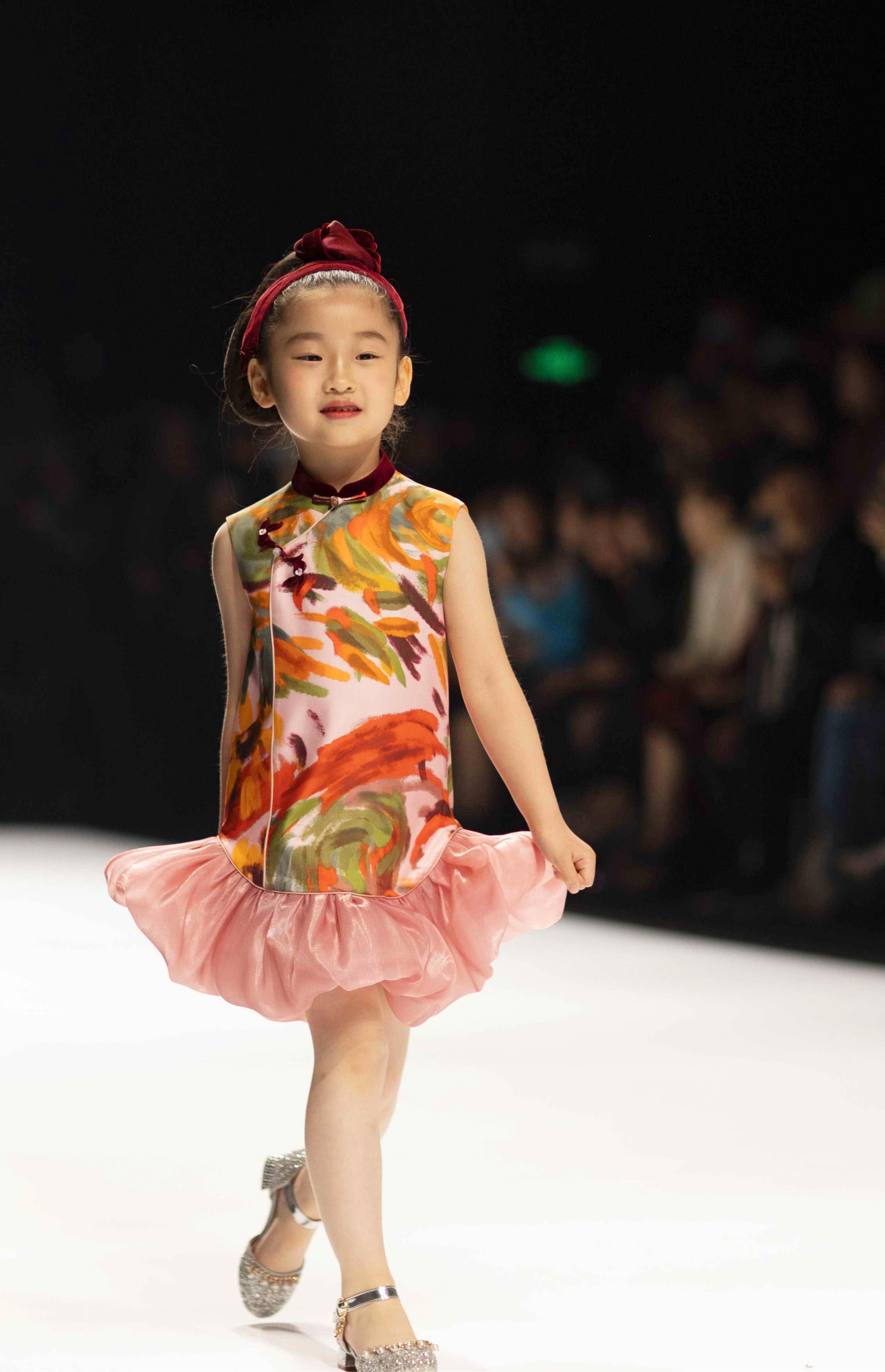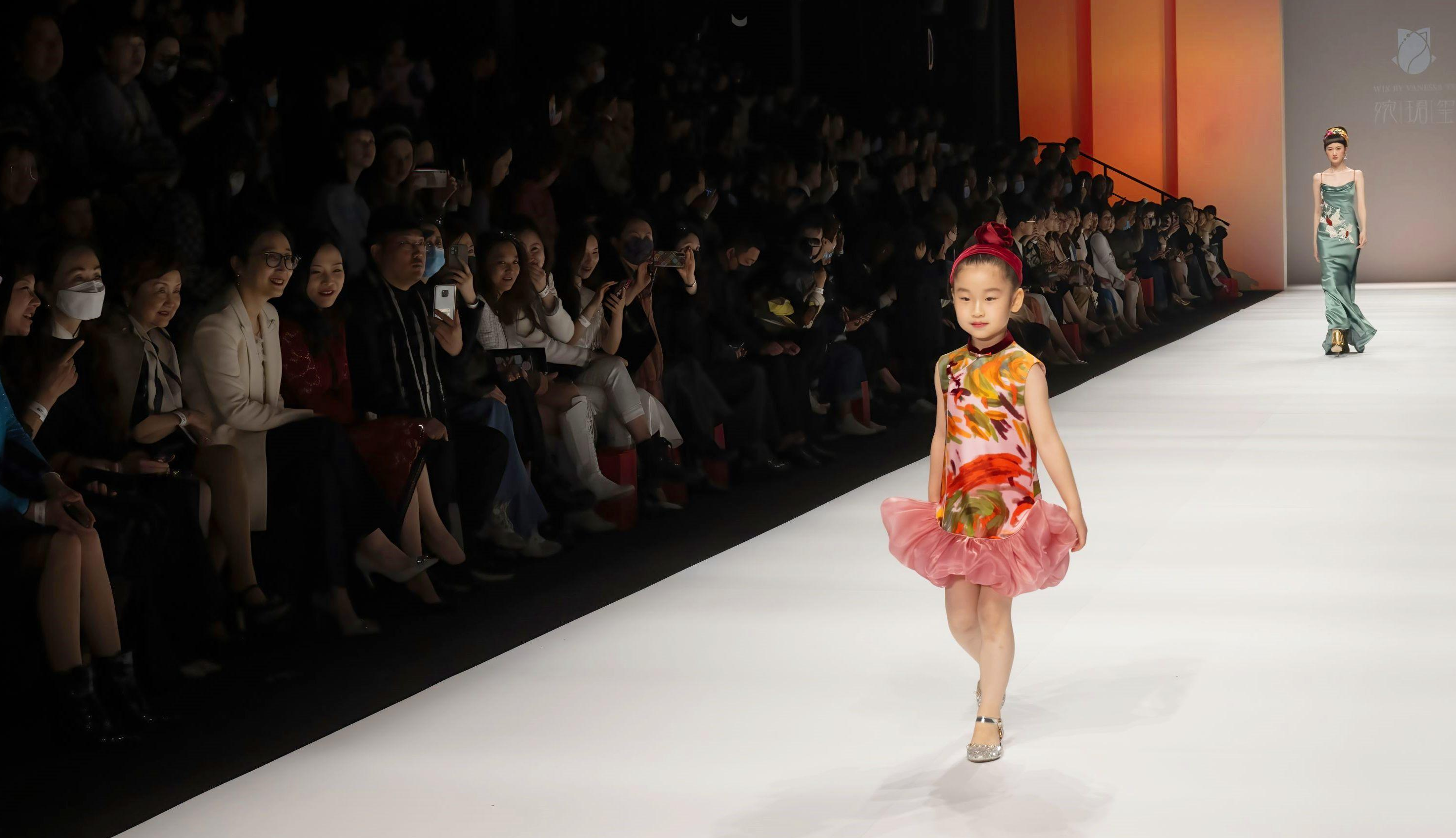 大秀上,老上海复古摩登的音乐与街头弄巷的声音交织,黄福熙(小蛋面儿)身着一件新中式蓬松边裙旗袍礼服亮相,观者也即刻代入其中、进行了一次和历史穿越时空的对话。黄福熙(小蛋面儿)就像一个从百年前老上海的历史长河中走过来的小女孩,步履轻盈、端庄大方,精美绝伦的华服加上精心打造的妆容,就像镜中人,而我们之于她,又何尝不是镜中人?黄福熙(小蛋面儿)本次大秀意在表达遇见自己、童年与未来的呼应,也在传递美好、和谐、圆满的理念。可爱至极的亚洲最小超模加上与其他模特相呼应的华服、配饰,令观者忽而惊喜于黄福熙(小蛋面儿)可掬的神情、忽而惊叹于极致美好的服饰,沉浸在其乐融融、“月圆花好”的精彩时分,意犹未尽。