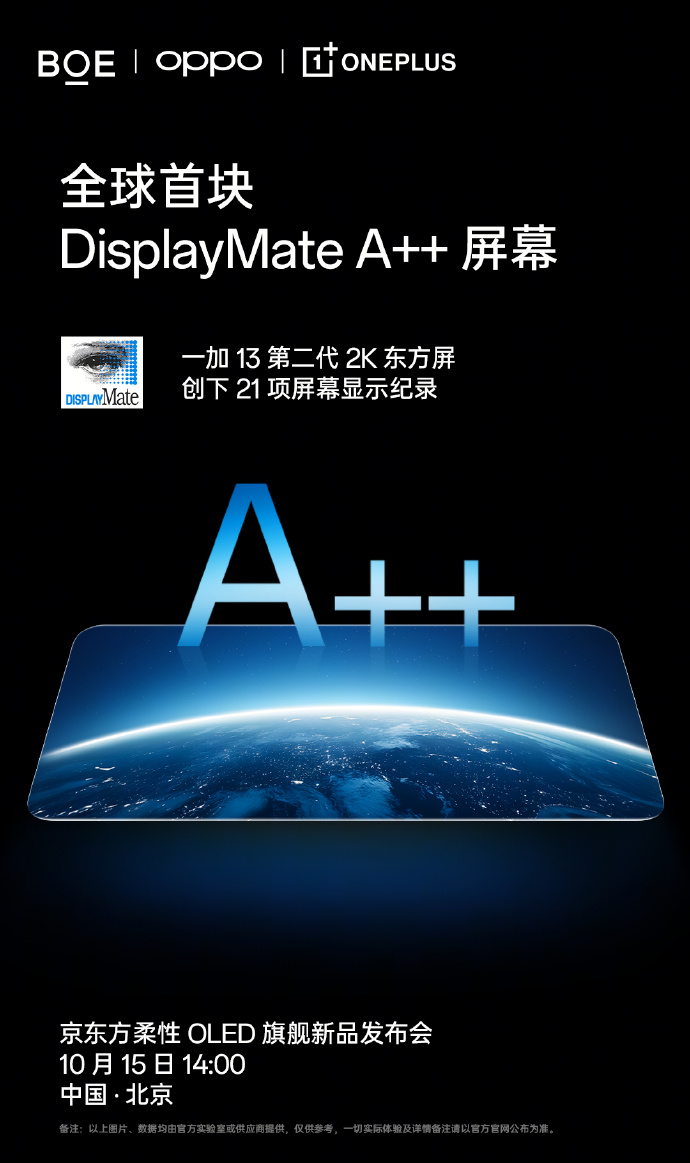 讲真,现在的国产屏真不输三星了,这次一加13要搭载的第二代 2K 东方屏,直接就通过了全球首个 DisplayMate A++ 权威认证。