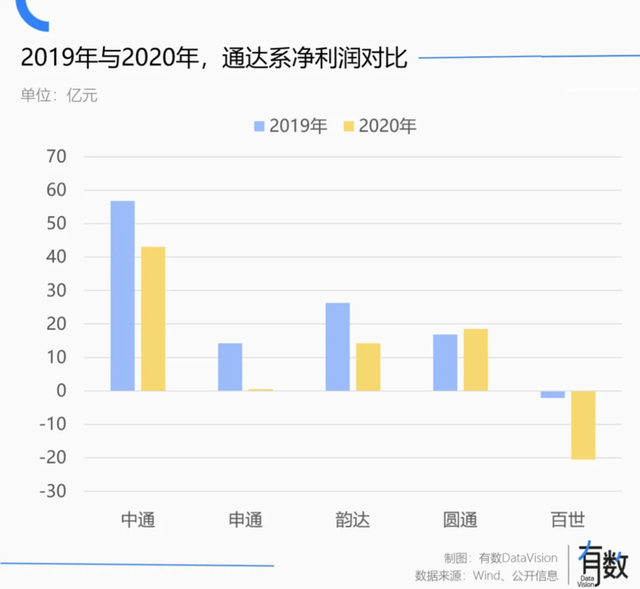 作为与阿里系绑定最深的快递公司,百世开创了亏损送快递的先例,打破了同行间不低于成本线揽件的长久默契。直到2019年,百世的单票盈利依然为负。