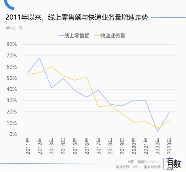 过去十多年里,电商件是快递市场增长的最大来源。自2011年开始,国内快递与线上零售额增长就高度趋同,目前,电商件占大盘比重已超80% [2] 。