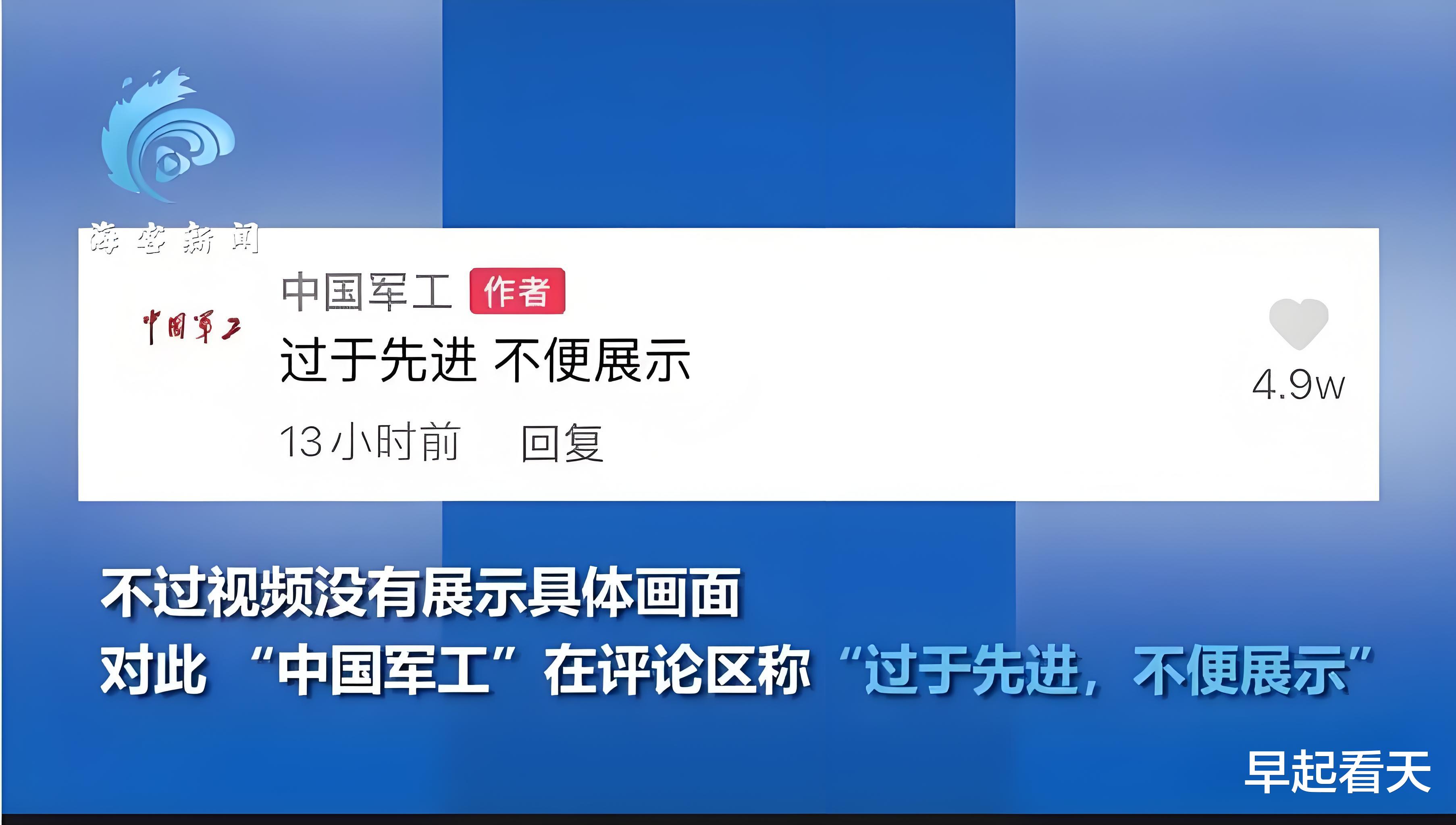 在相关消息的发布中,由于技术的先进性和敏感性,国家国防科技工业局新闻宣传中心官方抖音账号“中国军工”在发布相关视频时,仅展示了文字信息,并未展示图像,并在视频下方评论称“过于先进,不便展示”。