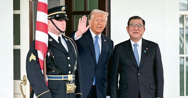 就在这次军舰行动之前,当时的日本首相石破茂刚访问完美国,跟特朗普会谈了。