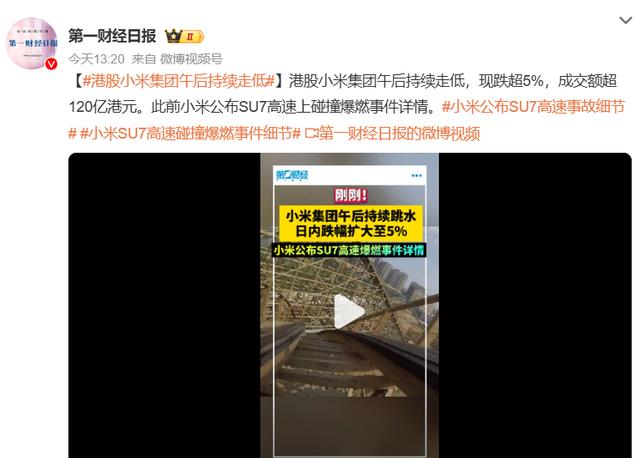 在事故发生之后,小米的股价也迎来了大跌,现跌超5%,目前还在持续下跌中。