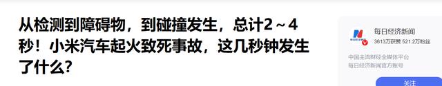 每日经济新闻——从检测到障碍物,到碰撞发生,总计2~4秒!小米汽车起火致死事故,这几秒钟发生了什么?2025-04-01