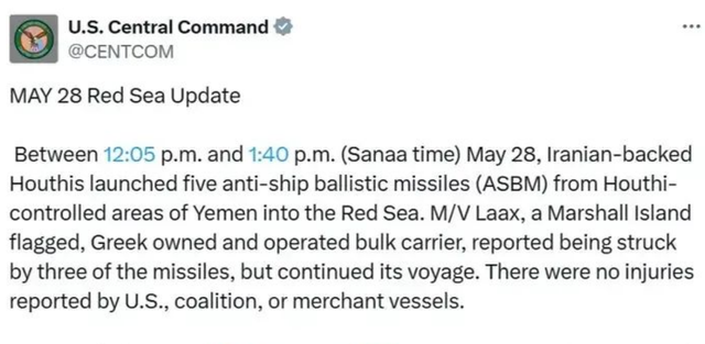 另外小英海事贸易管理局也称昨天在红海南部靠近也门西海岸临近海域有两艘商船被胡塞老哥反舰弹道导弹击中,胡塞老哥这波真给力,下次对准丑军军舰就完美了。
