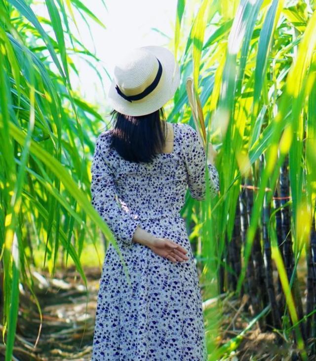 在温暖的阳光照耀下,满野的甘蔗生机勃发,翠叶繁茂,仿佛到处溢流着甘甜的蜜汁,吸引着游客的心魂。一排排甘蔗贪婪地畅饮着雨露,追逐着明媚的天光,早晚又沐染着紫霞,踩着如梦的彩云漫行。女子香腮带赤,轻移秀履在绿纱帐里慢慢行走,让人不禁感叹碌碌人世间怎会有如此神奇的草木,让世间蜜水纷飞,醉倒了千家万户。