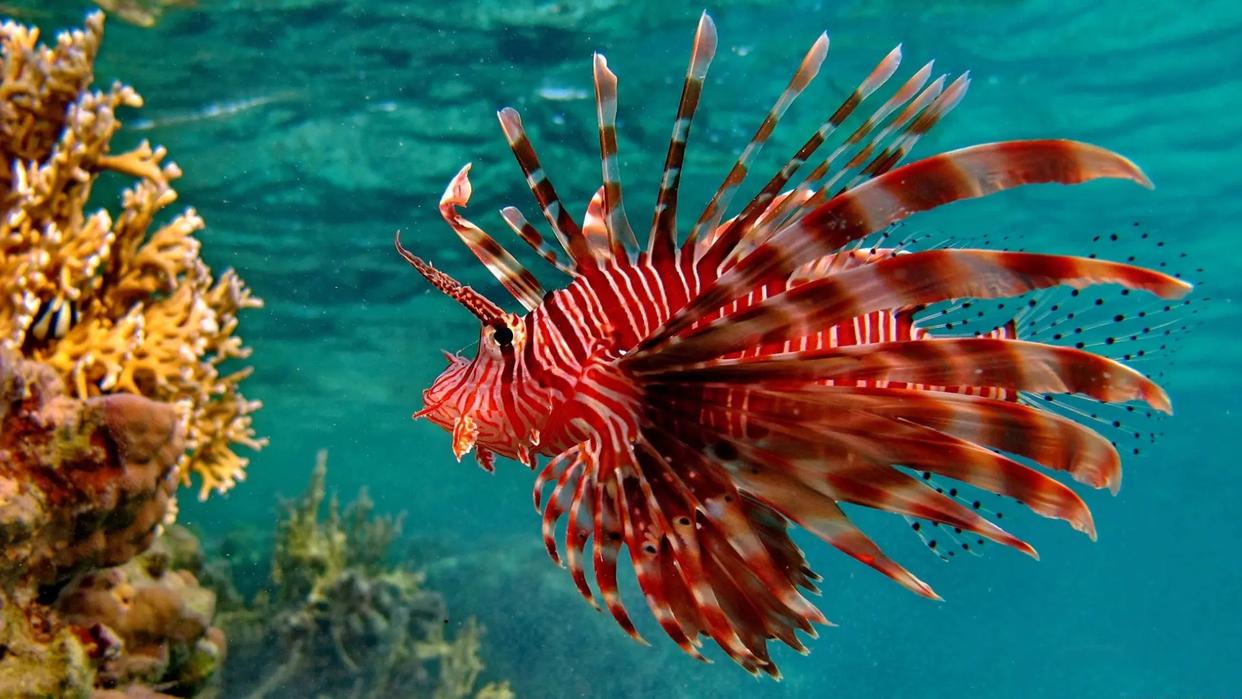 是不是所有的鱼都长得很丑陋呢,其实不是的,石头鱼的亲戚也叫作蓑鲉,也是一种具有强烈毒性的鱼,但是它长得鲜艳俏丽,体态优雅,蓑鲉也叫狮子鱼,这种漂亮的鱼身上长有18根毒刺,随时准备刺伤接近它的敌人,它的毒刺很厉害,即使被它轻微的刺一下,也会使人感到剧痛难忍,甚至失去知觉,狮子鱼还有一个特点,它能够连着几天一动不动地潜伏在岩石缝隙或珊瑚礁从中,长长的鳍伸在外面,像海生植物的嫩叶,这时候,假如有一条小鱼靠近,马上就会遭遇灭顶之灾。