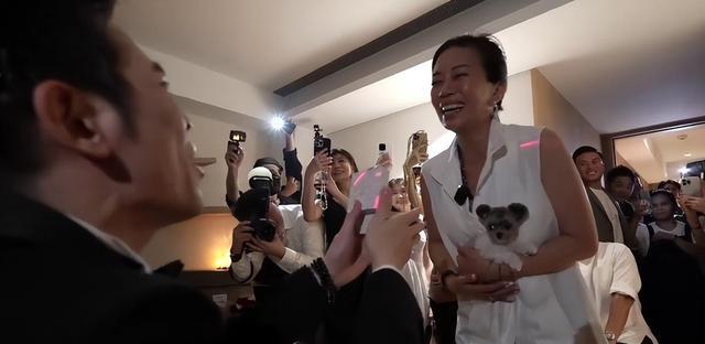 就在去年的求婚仪式上,萧敬腾一系帅气西装对着林有慧单膝下跪,而现场更是围满了亲朋好友和群众。