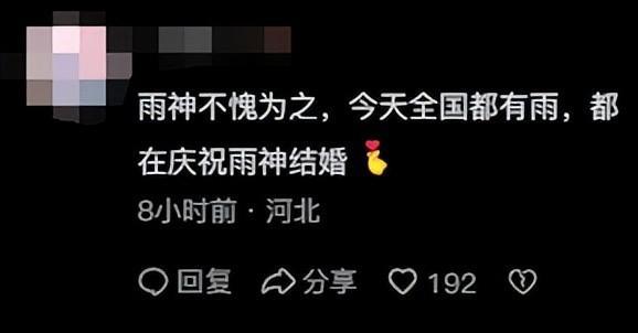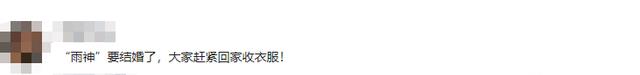 其中有一位网友更是这样表示:““雨神”要结婚了,大家赶紧回家收衣服!”