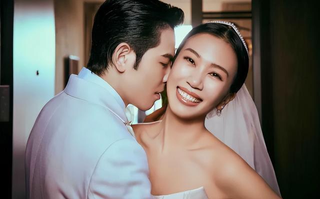 尤其是林有慧的婚纱,亮面配上蓬松纱边的设计,整个人看上去十分亮相,一旁的萧敬腾就宛如“陪衬品”。