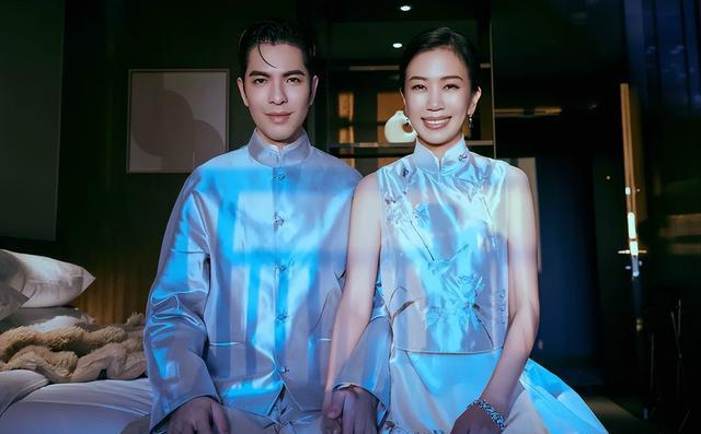 除此之外,萧敬腾和林有慧还有一套中式婚纱,渐变蓝的丝绸布料非常上档次。
