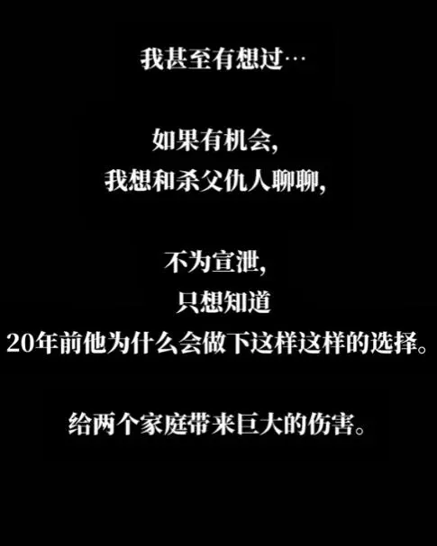 在得知这一消息后,早年丧父的当事人,还在想怎么和杀父仇人做邻居,怎么相处,以及内心,还想对方聊一聊,为何会痛下杀手。